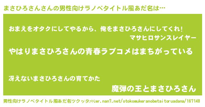 | 女子向けラノベタイトル風あだ名 | 『まさひろさん伯爵の花嫁』 |