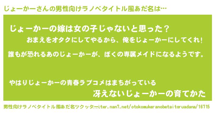 | ヘコむあだ名 | 『じょーかー(爆)』『じょ太郎』 |