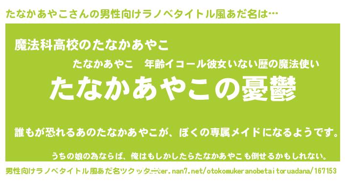 | 女子向けラノベタイトル風あだ名 | 『(仮)たなかあやこのやんごとなき事情』 |