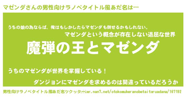 | ヒーロー風カッコイイあだ名 | 『仮面マゼダー』『ウルトラマゼンダマン』 |