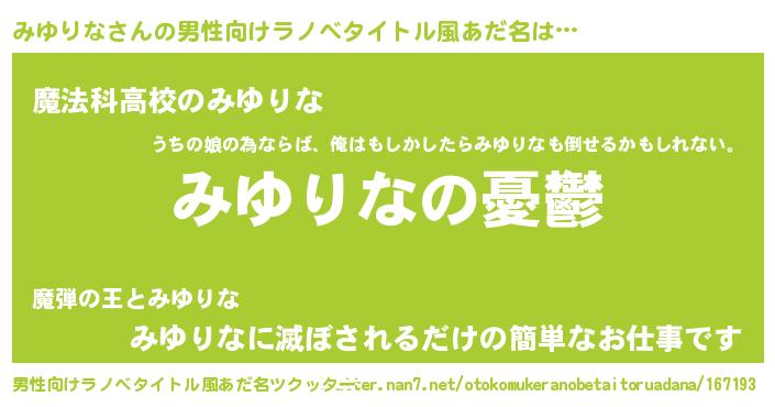 | 女子向けラノベタイトル風あだ名 | 『(仮)みゆりなのやんごとなき事情』 |