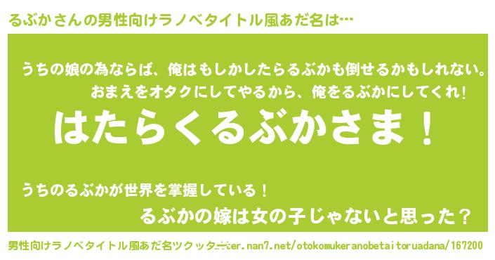 | 肩書あだ名 | 『るぶかプロデューサー』『るぶか大統領』 |