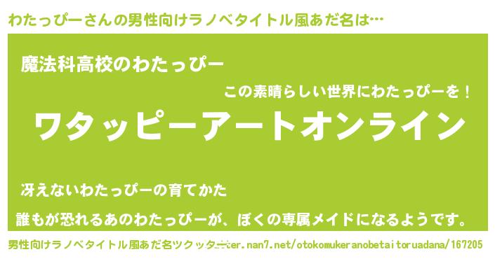 | 胡散臭い通販商品みたいなあだ名 | 『億万長者になれるブレスレット…その名も「わたっぴー」』 |
