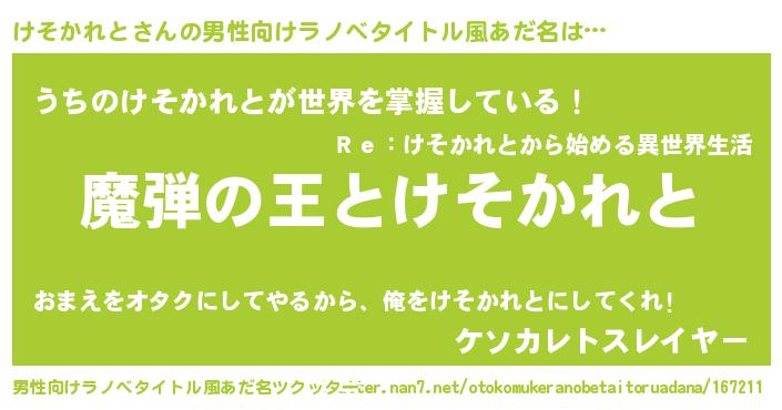 | 意味不明あだ名 | 『住所不定無職けそかれと(81歳)』 |