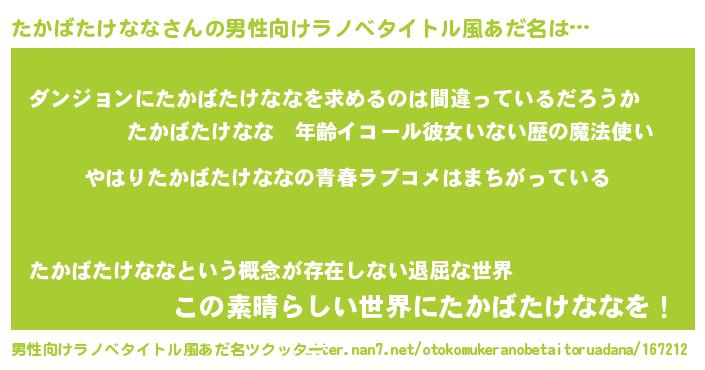 | 女子向けラノベタイトル風あだ名 | 『たかばたけなな伯爵の花嫁』 |