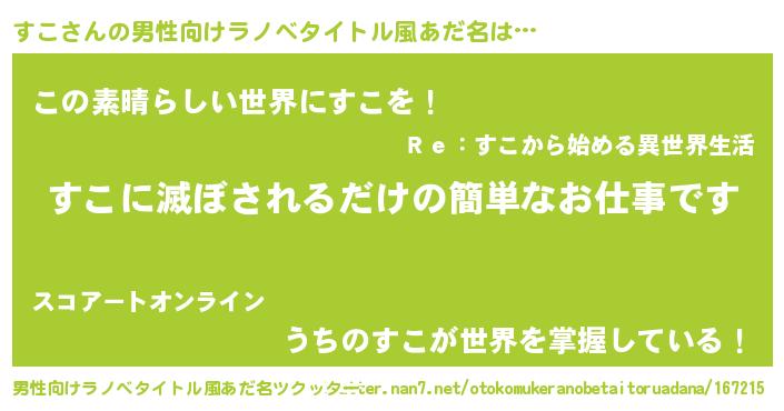 | 女子向けラノベタイトル風あだ名 | 『横柄すこと宰相陛下』『闇のすこ』 |