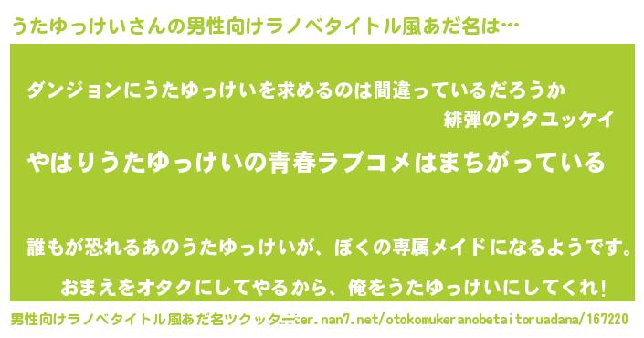 | 女子向けラノベタイトル風あだ名 | 『うたゆっけいの雑貨屋さん』 |