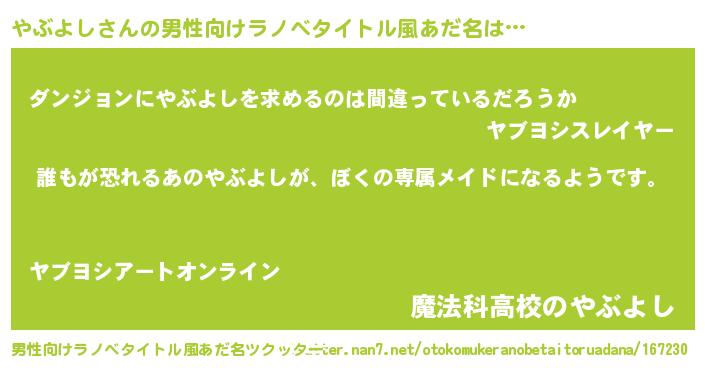 | 意味不明あだ名 | 『永久保存やぶよし』『自称やぶよし』 |