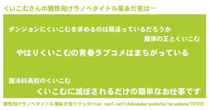 | 女子向けラノベタイトル風あだ名 | 『くいこむの雑貨屋さん』 |