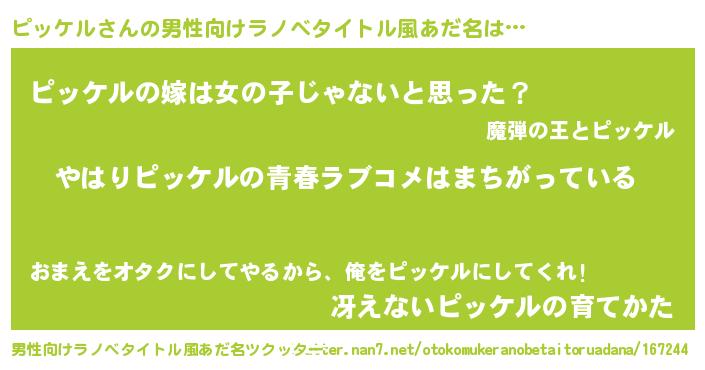 | 女子向けラノベタイトル風あだ名 | 『ピッケル伯爵の花嫁』『ピッケル恋絵巻』 |
