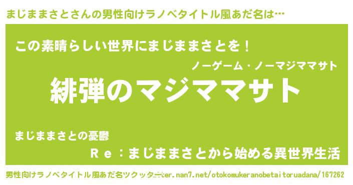 | ヒーロー風カッコイイあだ名 | 『仮面マジダー』『愛の使者まじままさと』 |