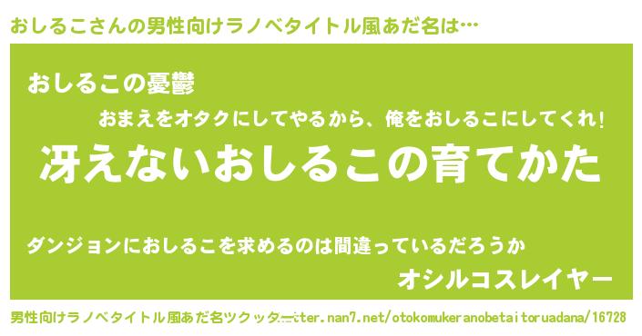 | 女子向けラノベタイトル風あだ名 | 『シンデレラおしるこ家の靴箱館』 |