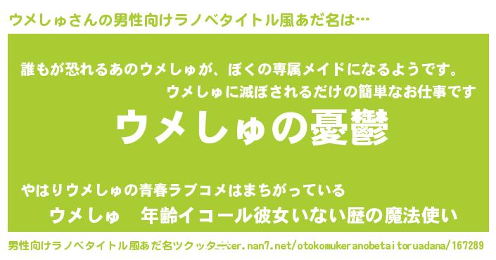 | 意味不明あだ名 | 『ペロリンウメしゅ』『永久保存ウメしゅ』 |