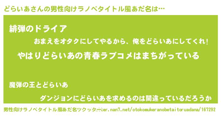 | 女子向けラノベタイトル風あだ名 | 『どらいあの雑貨屋さん』 |