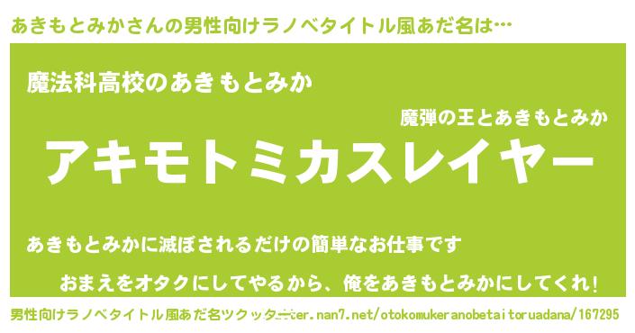 | ヘコむあだ名 | 『あきっふぃ~』『あきもとみか(爆)』 |