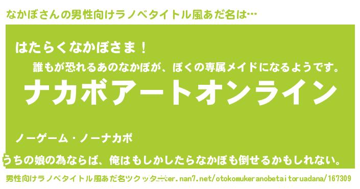 | 女子向けラノベタイトル風あだ名 | 『なかぼ姫と円卓の騎士』『なかぼ恋絵巻』 |