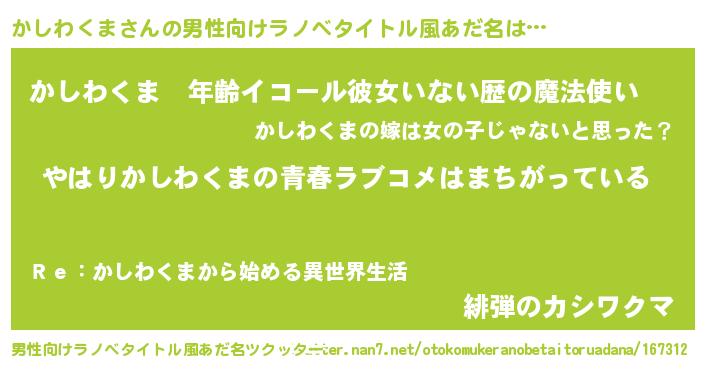 | ヒーロー風カッコイイあだ名 | 『ウルトラかしわくまマン』 |