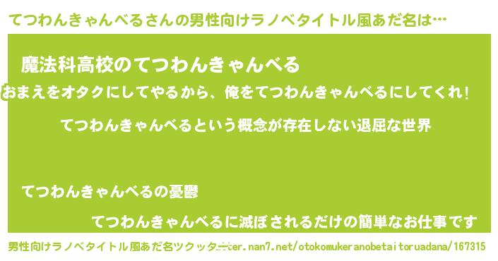 | 胡散臭い通販商品みたいなあだ名 | 『絶対に幸福をもたらす水素水…その名も「てつわんきゃんべる」』 |