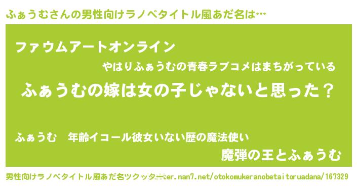 | 萌えアニメ | 主人公(ふぁうむ)のあだ名『 ふぁふぁきゅん』 |