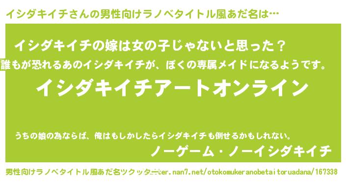 | 女子向けラノベタイトル風あだ名 | 『イシダキイチ姫と円卓の騎士』 |