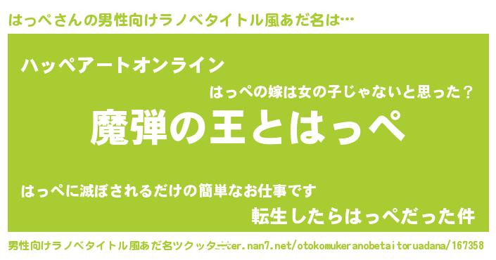 | 意味不明あだ名 | 『住所不定無職はっぺ(1歳)』 |