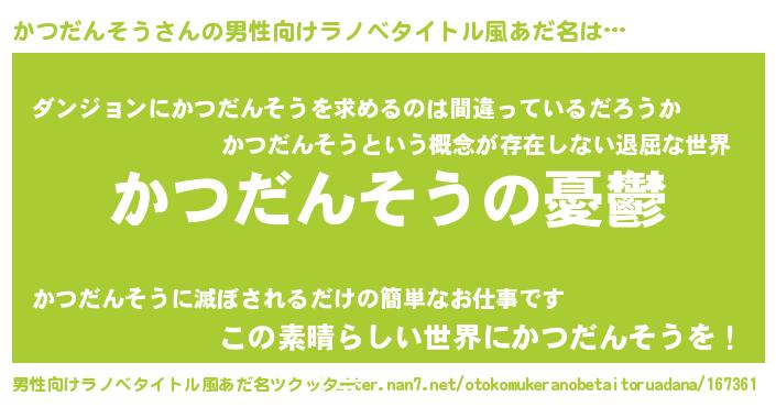 | 胡散臭い通販商品みたいなあだ名 | 『必ず成功するブレスレット…その名も「かつだんそう」』 |