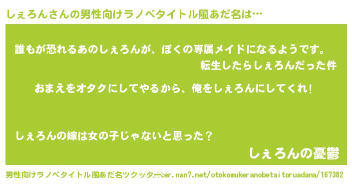| 女子向けラノベタイトル風あだ名 | 『しぇろん夫妻のなれそめ』 |