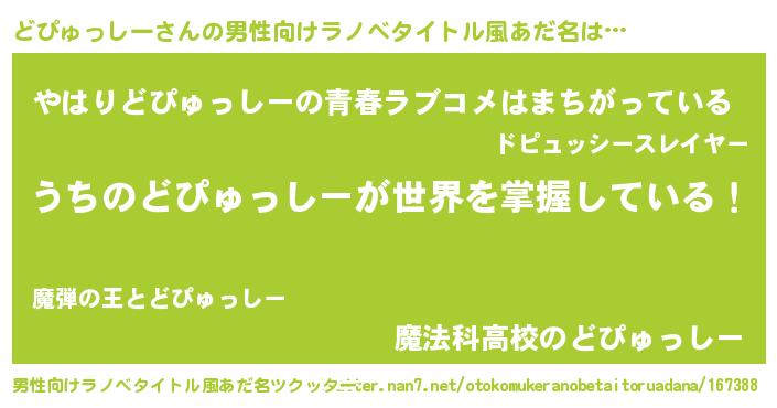 | 胡散臭い通販商品みたいなあだ名 | 『運命の人と巡り会える高級そうな壺…その名も「どぴゅっしー」』 |