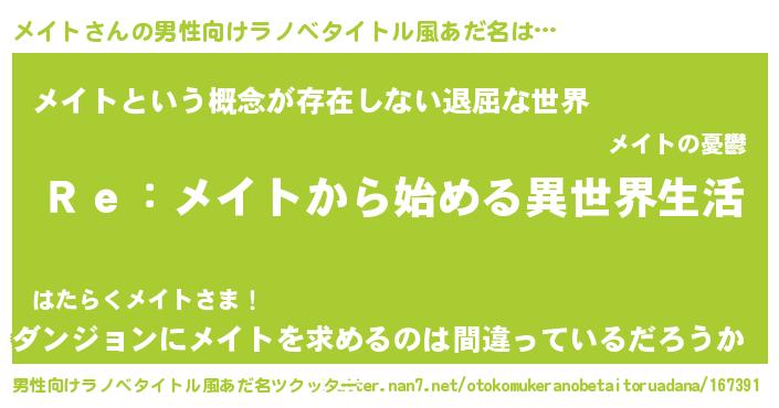 | ファンタジー風あだ名 | 『ゼメイトゥ』『メイディッシュ』 |