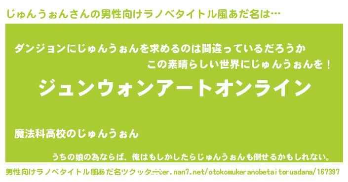 | 胡散臭い通販商品みたいなあだ名 | 『億万長者になれる水晶球…その名も「じゅんうぉん」』 |