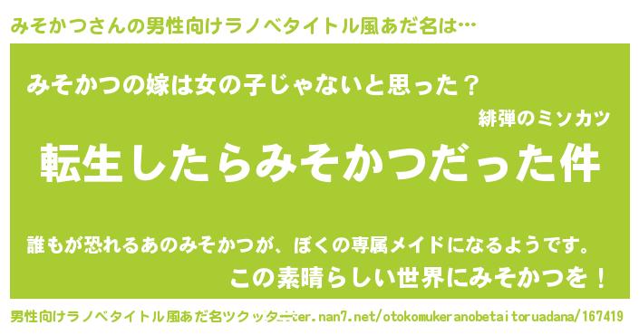 | 胡散臭い通販商品みたいなあだ名 | 『伝統あるペンダント…その名も「みそかつ」』 |