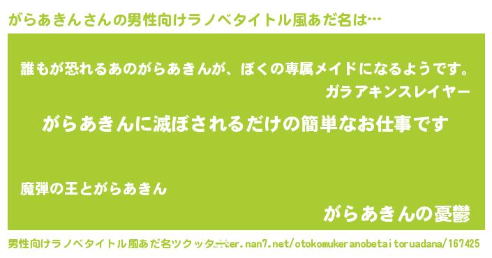 | ヘコむあだ名 | 『がらあきん(苦笑)』『がらにゅー』 |