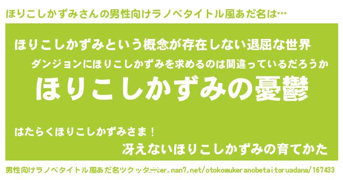| 女子向けラノベタイトル風あだ名 | 『(仮)ほりこしかずみのやんごとなき事情』 |