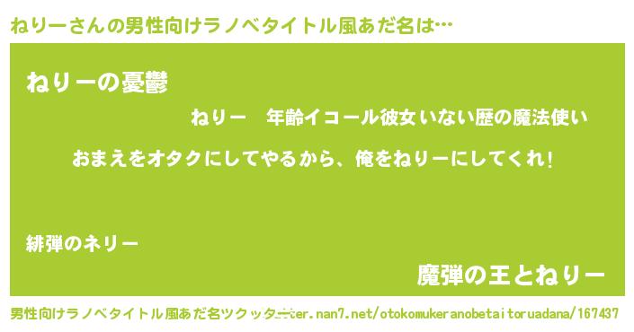 | ヒーロー風カッコイイあだ名 | 『正義の使者ねりー』『スーパーネリー』 |