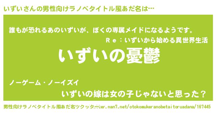 | 胡散臭い通販商品みたいなあだ名 | 『モテモテ間違いなし水晶球…その名も「いずい」』 |