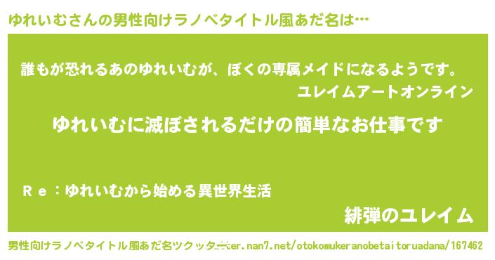 | ヘコむあだ名 | 『ゆれいむ(笑)』『ゆれっふぃ~』 |