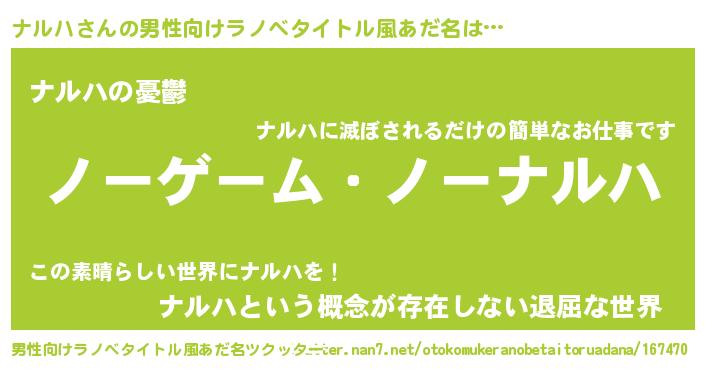 | ヒーロー風カッコイイあだ名 | 『天空の使者ナルハ』『スーパーナルハ』 |