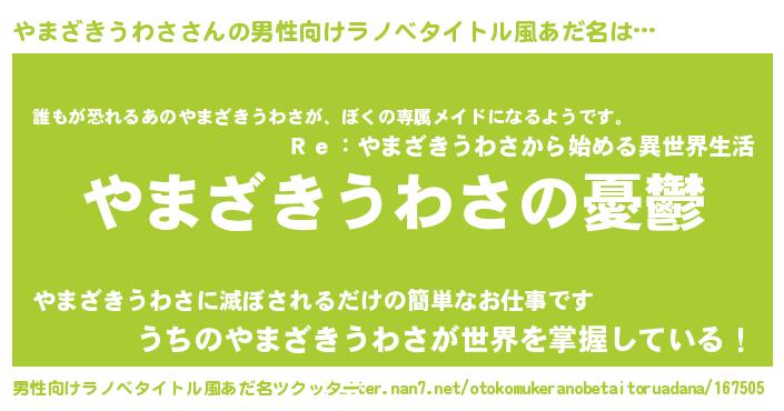 | 女子向けラノベタイトル風あだ名 | 『やまざきうわさ姫と円卓の騎士』 |
