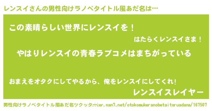 | 女子向けラノベタイトル風あだ名 | 『レンスイの雑貨屋さん』 |