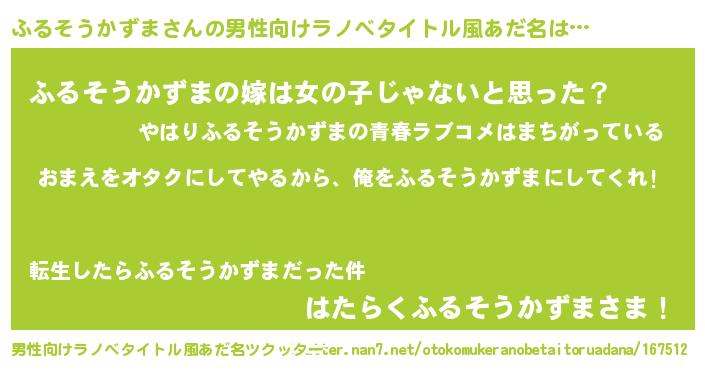 | 女子向けラノベタイトル風あだ名 | 『ふるそうかずま恋絵巻』 |