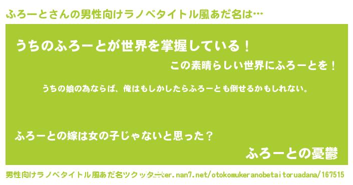 | 女子向けラノベタイトル風あだ名 | 『ふろーとの婚約者』 |