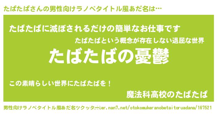 | 胡散臭い通販商品みたいなあだ名 | 『必ず成功する水晶球…その名も「たばたば」』 |