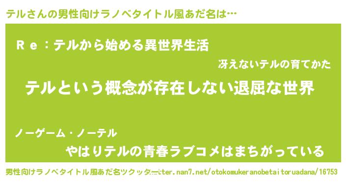 | 胡散臭い通販商品みたいなあだ名 | 『来世でも幸せになれる水素水…その名も「テル」』 |