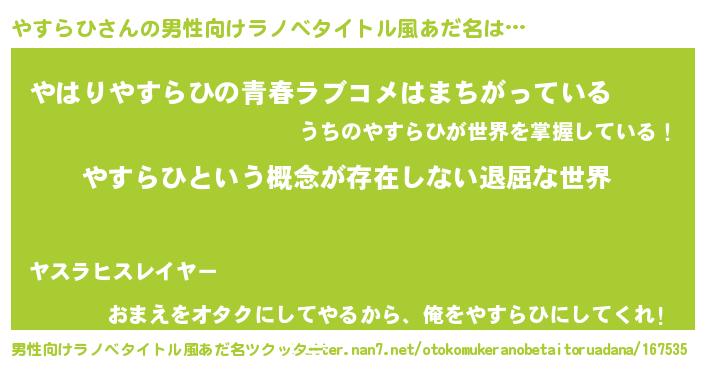 | ヘコむあだ名 | 『やすらひ(爆)』『牛乳』『やす太郎』 |