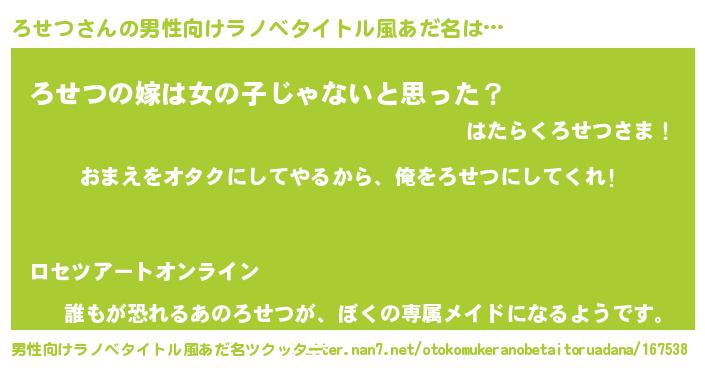 | 女子向けラノベタイトル風あだ名 | 『ろせつ夫妻のなれそめ』 |