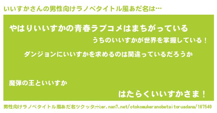 | ヒーロー風カッコイイあだ名 | 『魔戒騎士イイ』『ウルトラいいすかマン』 |