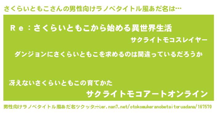 | 女子向けラノベタイトル風あだ名 | 『さくらいともこは平凡を望む』 |