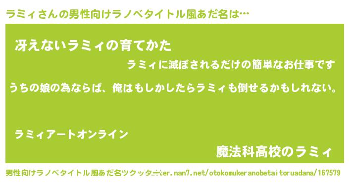 | ファンタジー風あだ名 | 『エターナルラミィー』『カークラミラー』 |