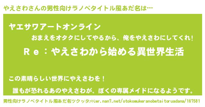 | 女子向けラノベタイトル風あだ名 | 『闇のやえさわ』 |