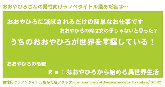 | 意味不明あだ名 | 『自称おおやひろ』『ペロリンおおやひろ』 |